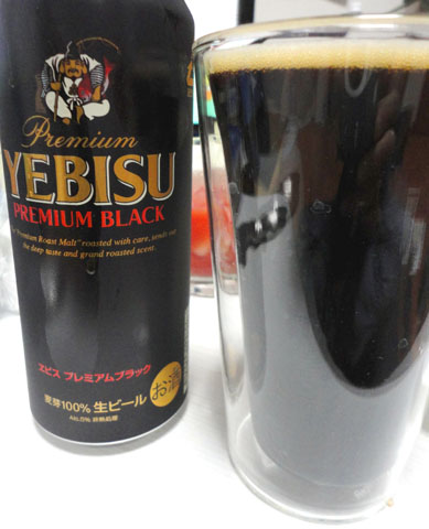 グラスはエビスのプレミアムスタウト(ブラック)。あまり甘さが残らず、スッキリ呑めるのが好感です。