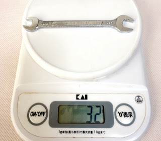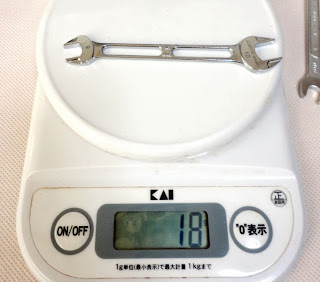 そこで紹介していただいたのが、LIGHTOOL両口スパナ LSX0810でした。 ラインナップにはメガネレンチやラチェット類もあり、全て肉抜きが施されています。 計量してみるとそれまでのスパナと比べて 40%~半分近くまで軽量化されていました。